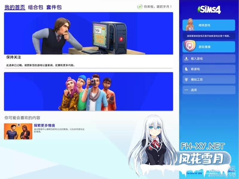 (4)这里不要忙着安装MOD包,先运行桌面上的”模拟人生4 - 梦幻人生V3“快捷方式,选择”离线开始“启动一次游戏