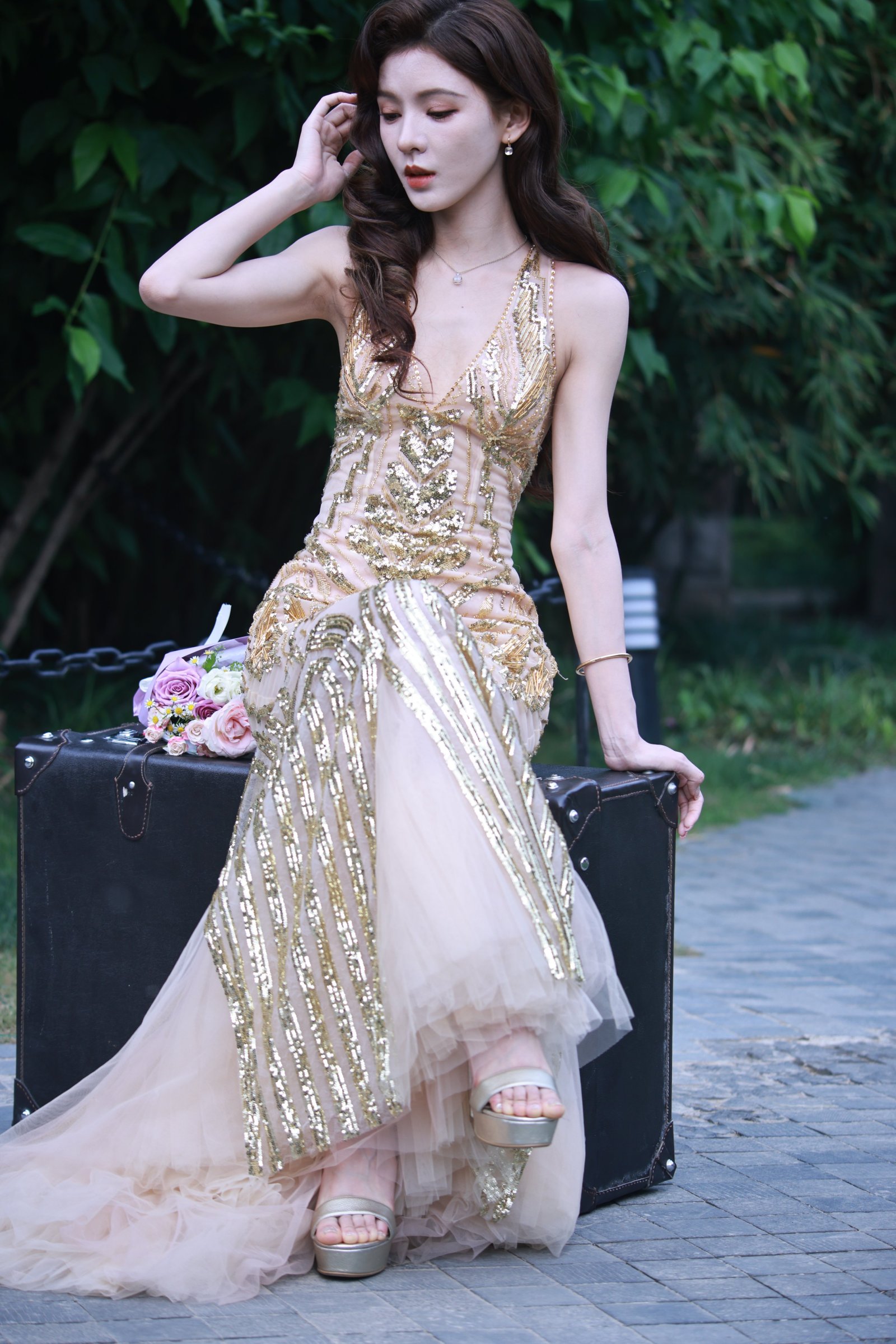 张予曦费加罗外拍生图 深V露胸露背礼服 光脚特写918p